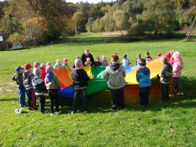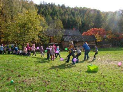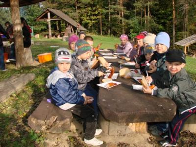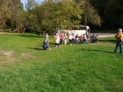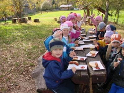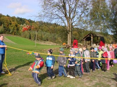 W miesiącu wrześniu klasa przedszkolna udała się na całodniową wycieczkę do Zamościa i Krasnobrodu zorganizowaną przez Stowarzyszenie Animatorów Społecznych (SAS) w Hrubieszowie. Zwiedzanie zamojskiego ZOO dzieci rozpoczęły od zajęcia połączonego z projekcją zdjęć na temat "Zwierzęta Azji", rozwiązywały zagadki, wykonały rysunek, a następnie wraz z panią przewodnik zwiedziły ogród zoologiczny. Podczas jazdy do Krasnobrodu dzieci otrzymały od Pań (organizatorek wycieczki) pyszne kanapki oraz butelkę wody mineralnej. W Krasnobrodzie dzieci zwiedziły muzeum dinozaurów, po którym oprowadził dzieci przewodnik mający z dziećmi wspaniały kontakt, w wyniku którego nie odstępowały Go ani na chwilę. Pod koniec zwiedzania chętne dzieci miały okazję odkopać szkielet dinozaura znajdujący się na placu zabaw na terenie muzeum. Dalszy ciąg zabawy przenieśliśmy na plac, w pobliżu którego już piekły się dla dzieci kiełbaski. W oczekiwaniu na nie były zabawy z chustą animacyjną,zabawy z liną (przeciąganie, przechodzenie pod nią oraz przez nią skakanie), dmuchanie i zabawy balonami. Do Nieledwi wróciliśmy ok. 18-tej.