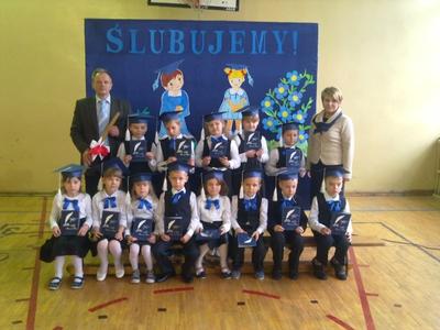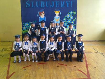 Dnia 30 listopada 2012 roku uczniowie klasy I złożyli uroczyste ślubowanie na uczniów naszej szkoły. Recytując wiersze i śpiewając piosenki udowodnili, że będą bardzo dobrze wypełniać obowiązki uczniów. Po akademii Pan Dyrektor dokonał symbolicznego aktu ślubowania i pogratulował uczniom przyjęcia do braci uczniowskiej. Na koniec, wychowawczyni klasy, pani Elżbieta Szkalej wręczyła dzieciom pamiątkowe dyplomy i prezenty, ufundowane przez rodziców. Wszystkim pierwszoklasistom życzymy sukcesów w nauce, sporcie, konkursach plastycznych i przedmiotowych oraz wiele radości.