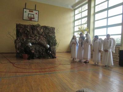 Dnia 16 kwietnia 2014 roku uczniowie klas II i III postanowili w sposób wyjątkowy uczcić początek Triduum Paschalnego i przybliżyć nieco atmosferę nadchodzących świąt. Przygotowali, z pomocą wychowawczyń, pani Elżbiety Szkalej oraz pani Marii Ciesielczuk przepiękny montaż słowno - muzyczny pod tytułem "". Podczas przedstawienia obecni byli uczniowie, rodzice oraz nauczyciele. Wszyscy nie szczędzili pochwał i pozytywnych słów.
