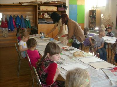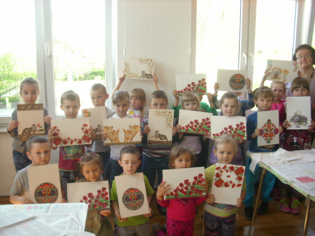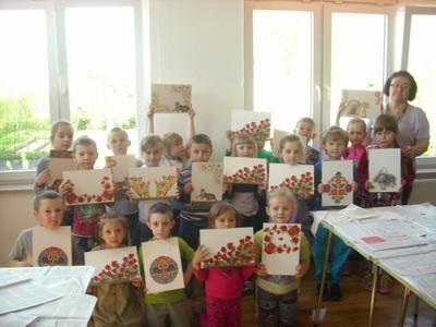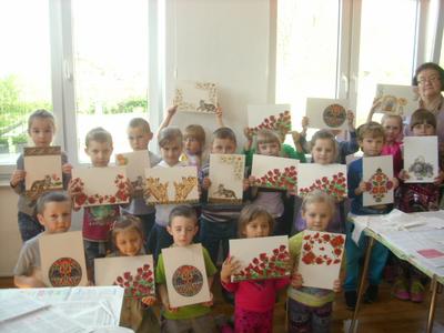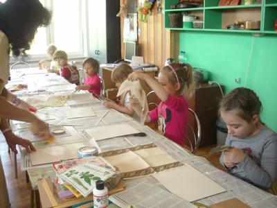 Dnia 27.04.2014 dzieci z kl.0 brały udział w zajęciach warsztatowych z plastyki w Domu Kultury w Hrubieszowie. Miały okazję zobaczyć ciekawe prace, poznać różne techniki a szczególnie technikę decoupage. Ta technika została wykorzystana na warsztatach do wykonania prac będących później prezentem dla Mam z okazji Dnia Matki.
