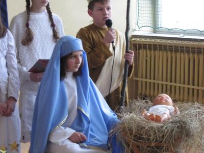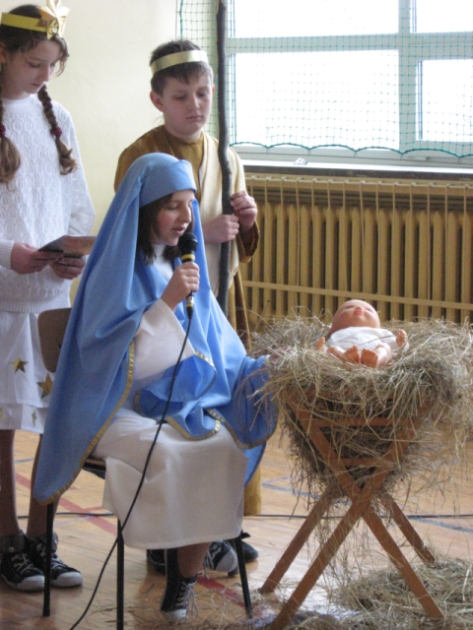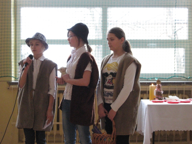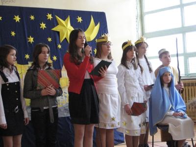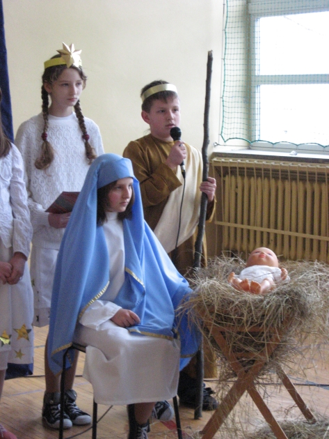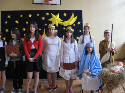22 grudnia 2011 r.w naszej szkole odbyło się Spotkanie Opłatkowe, na którym gościliśmy ks. proboszcza J. Grandę, przewodniczącą Rady Rodziców p. J. Krawczyk oraz rodziców. Uczniowie z kl.IV - V - VI przybliżyli wszystkim obecnym tajemnicę Bożego Narodzenia, przedstawiając inscenizację pt. "Oddajmy pokłon Jezusowi". Aby poczuć nadchodzący świąteczny nastrój, nie zapomnieliśmy o wspólnej modlitwie, śpiewaniu kolęd a także o przełamaniu się opłatkiem i złożeniu życzeń.