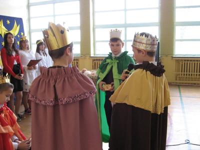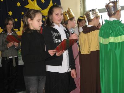 22 grudnia 2011 r.w naszej szkole odbyło się Spotkanie Opłatkowe, na którym gościliśmy ks. proboszcza J. Grandę, przewodniczącą Rady Rodziców p. J. Krawczyk oraz rodziców. Uczniowie z kl.IV - V - VI przybliżyli wszystkim obecnym tajemnicę Bożego Narodzenia, przedstawiając inscenizację pt. "Oddajmy pokłon Jezusowi". Aby poczuć nadchodzący świąteczny nastrój, nie zapomnieliśmy o wspólnej modlitwie, śpiewaniu kolęd a także o przełamaniu się opłatkiem i złożeniu życzeń.