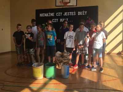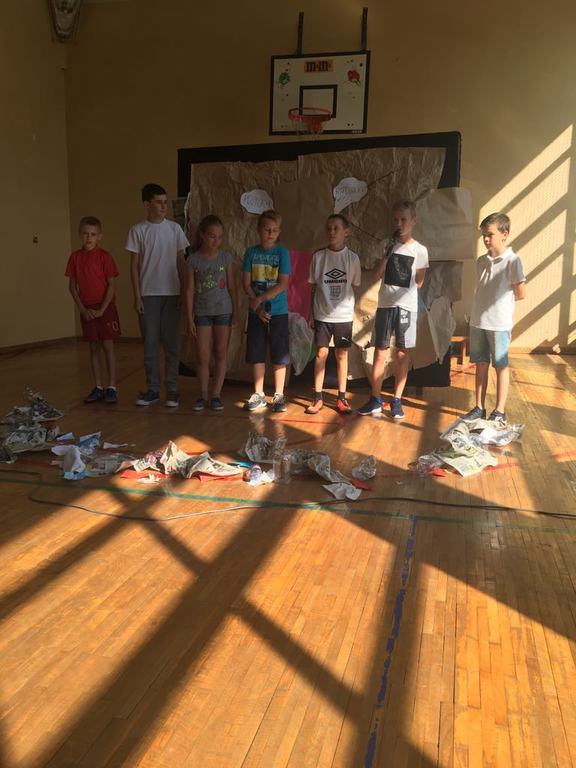 W związku z przypadającym dnia 1 czerwca 2018 roku dniu wolnym w naszej szkole od zajęć dydaktycznych, obchody Dnia Dziecka zostały przełożone na poniedziałek 4 czerwca. Tego dnia przygotowano dla naszych uczniów wiele atrakcji. Na początek klasa V z wychowawczynią, panią Feliksą Perehubką, przypomniała wszystkim zgromadzonym jak ważne jest dbanie o naszą planetę. Uczniowie zaprezentowali montaż słowno - muzyczny o tematyce ekologicznej.