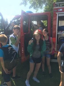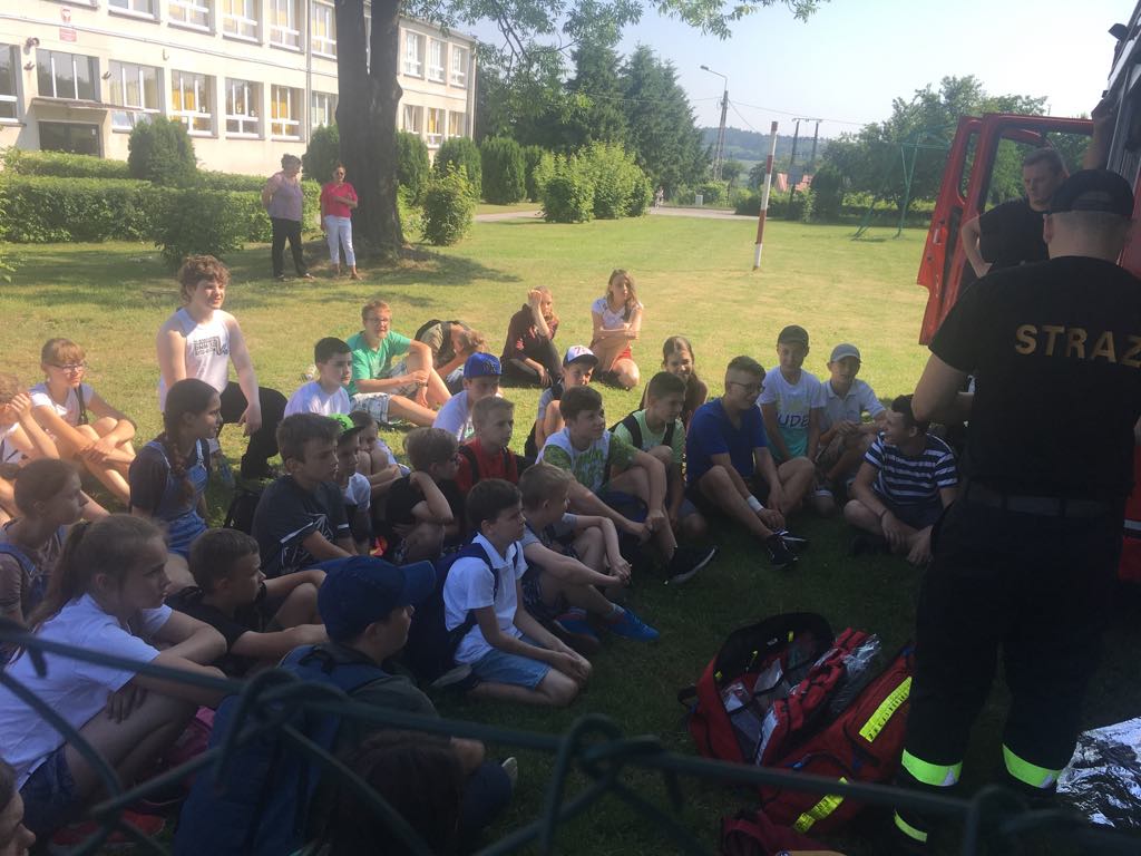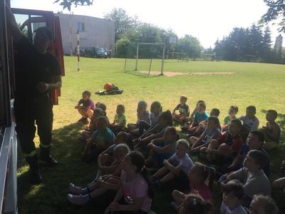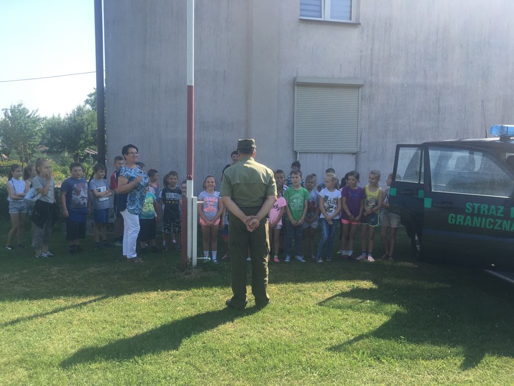 Następną atrakcją dnia były pokazy jednostek Straży Pożarnej i Straży Granicznej przybyłych tego dnia do naszej szkoły. Funkcjonariusze przybliżyli dzieciom pracę strażaka i strażnika celnego, pokazali sprzęt, a nawet użyczyli do zwiedzania i oglądania swoich pojazdów w celach edukacyjnych.