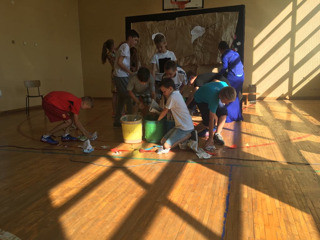 Po krótkiej prezentacji nadszedł czas na wyczekiwany moment. Uczniowie klas młodszych mięli okazje wziąć udział w zawodach zorganizowanych przez panią Marię Ciesielczuk. Starsi zaś udali się na rajd rowerowy w kierunku Góry Ślimaka w Zadębcach, zakończony ogniskiem i pieczeniem kiełbasek.