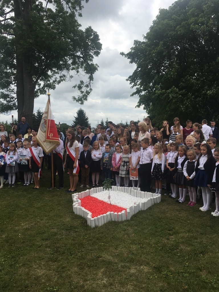 22 czerwca 2018 r. zaraz po oficjalnej częsci zakończenia roku szkolnego wszyscy udali się w miejsce które bedzie Nam przypominało bardzo ważne wydarzenie - Rok 100-lecia Odzyskania Niepodległości. Właśnie tutaj codziennie będziemy uświadamiać sobie jak ważna historię tworzymy. Podczas uroczystości był z Nami Wójt Gminy Trzeszcany - Stanisław Czarnota, Rodzice, Nauczyciele oraz My - uczniowie, którzy chcemy pielęgnować Naszą lokalną pamięć o tak ważnym wydarzeniu historycznym dla wszystkich Polaków.