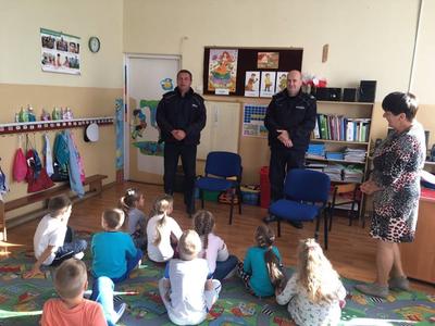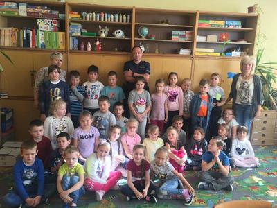 26 września klasa "0" oraz klasy I i II gościły policjantów z komendy w Hrubieszowie i Trzeszczanach. Zaproszeni goście opowiedzieli maluchom jak bezpiecznie poruszać sie po drodze. Zwrócili uwagę na istotne elementy, o których trzeba pamiętać aby zadbać o swoje bezpieczeństwo. Omówili też inne zagrożenia, z którymi dzieci mogą spotkać się w szkole i w domu. Uczniowie klasmłodszych bardzo chętnie brały udzial w dyskusji, zadawały pytania i opowiadały o swoich doświadczeniach. Na koniec uwieczniliśmy nasze spotkanie pamiatkowym zdjęciem.