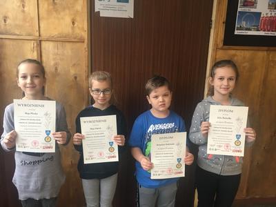 19 listopada nastąpiło rozstrzygnięcie etapu ogólnopolskiego. Wszyscy uczniowie z naszej szkoły otzrymali pamiątkowe dyplomy oraz słodycze. Ale były także nagrody rzeczowe, które zdobyli: Sebastian Sadowski (kl. II) - II miejsce, Maja Dąbek (kl. III) - wyróżnienie, Julia Bubiełło (kl. IV) - II miejsce i Maja Pliszka (kl. IV) - wyróżnienie.
