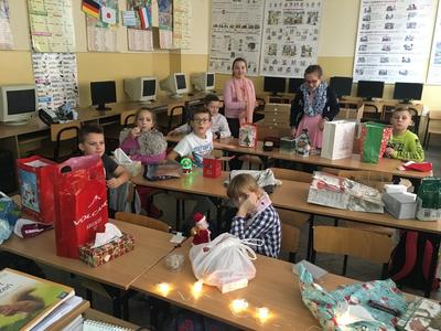 W klasach IV - VIII uczniowie wymienili się prezentami, które przygotowywali dla swoich koleżanek i kolegów już od dłuższego czasu.
