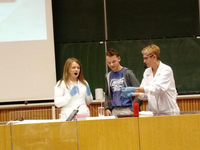 Na Wydziale Chemii UMCS, w atmosferze zabawy i z dużą dozą humoru, pracownicy naukowi prezentowali ciekawe, nietypowe eksperymenty i doświadczenia chemiczne, trudne lub niemożliwe do wykonania w warunkach szkolnych, ale też takie, które przy pomocy prostych środków można przeprowadzić we własnym zakresie. Mogliśmy poczuć się tam, jak prawdziwi studenci. Z zaciekawieniem przypatrywaliśmy się prezentowanym doświadczeniom i chłonęliśmy przekazywaną wiedzę. Pokazy zwiększyły zainteresowanie chemią. Poszerzyła się też nasza wiedza na temat tego przedmiotu, którą będziemy mogli wykorzystać w praktyce oraz na lekcjach.