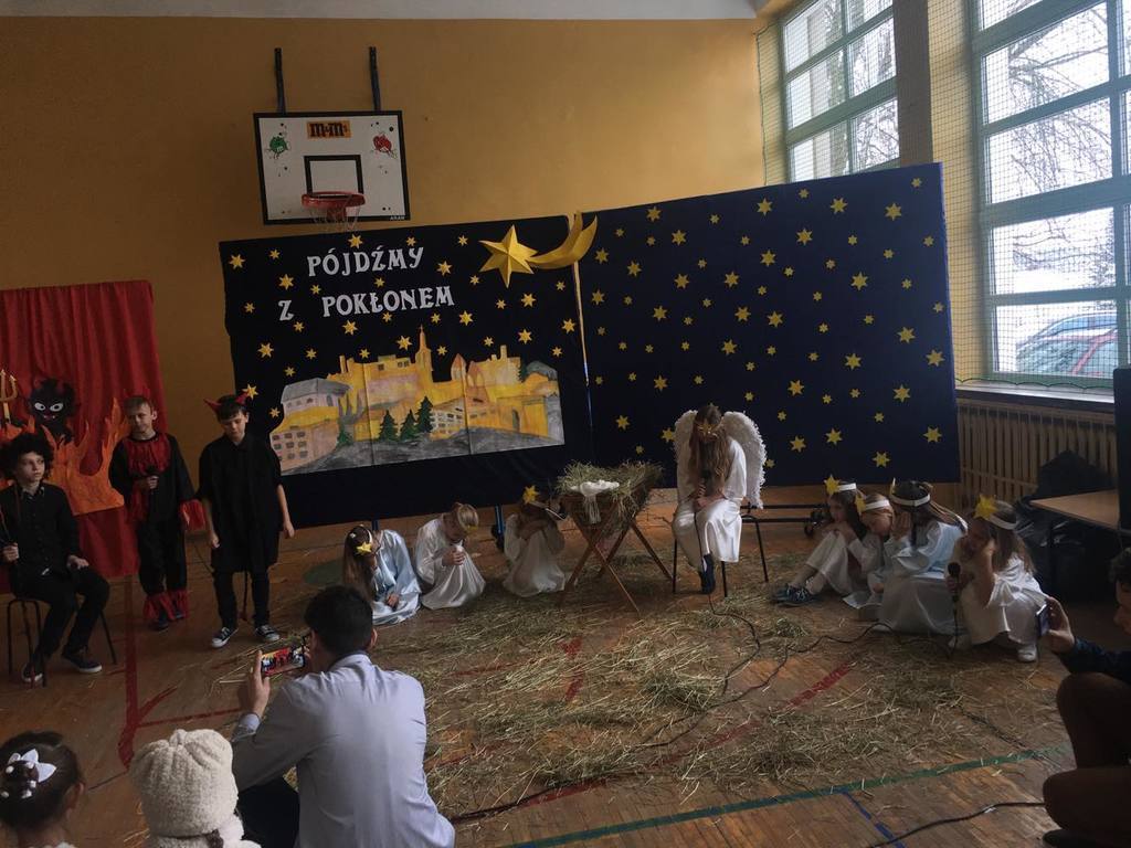 Zaproszeni goście, Rada Pedagogiczna, rodzice i cała społeczność uczniowska obejrzała jasełka, które przypominały oglądającym o prawdziwej istocie Świąt Bożego Narodzenia.