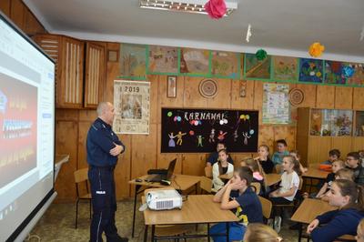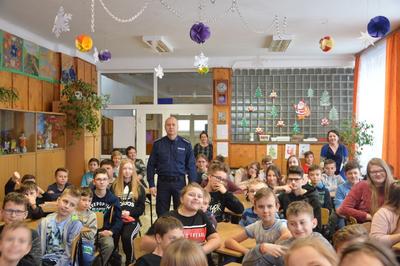 30 stycznia 2019 r. w Naszej szkole odbyło się spotkanie z funkcjonariuszem Komendy Powiatowej Policji w Hrubieszowie, aspirantem sztabowym Jarosławem Karkuszewskim. Podczas prelekcji uczniowie klas 3 - 8 uzyskali cenne informacje na tematy: „Cyberprzemocy”, „Odpowiedzialności nieletnich za popełnianie czynów karalnych i przejawy demoralizacji” oraz „Bezpieczeństwa w czasie ferii na śniegu, wodzie i drodze”