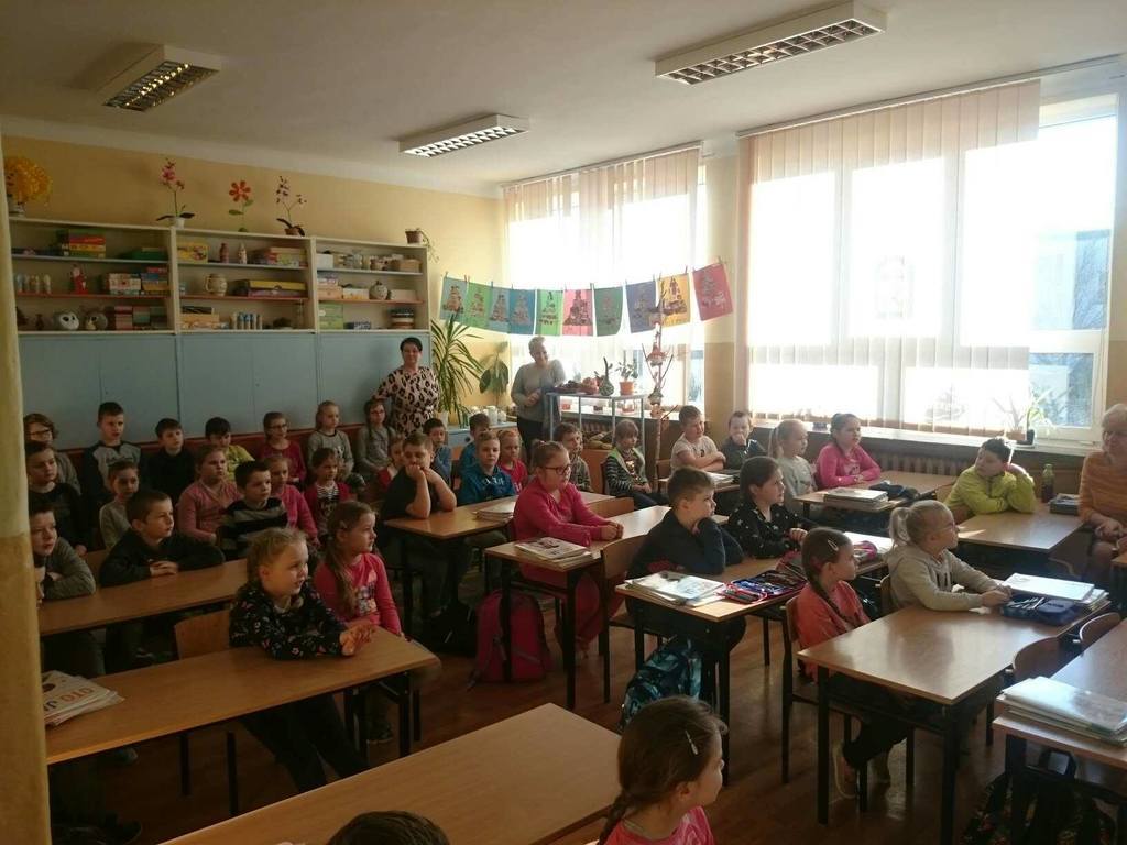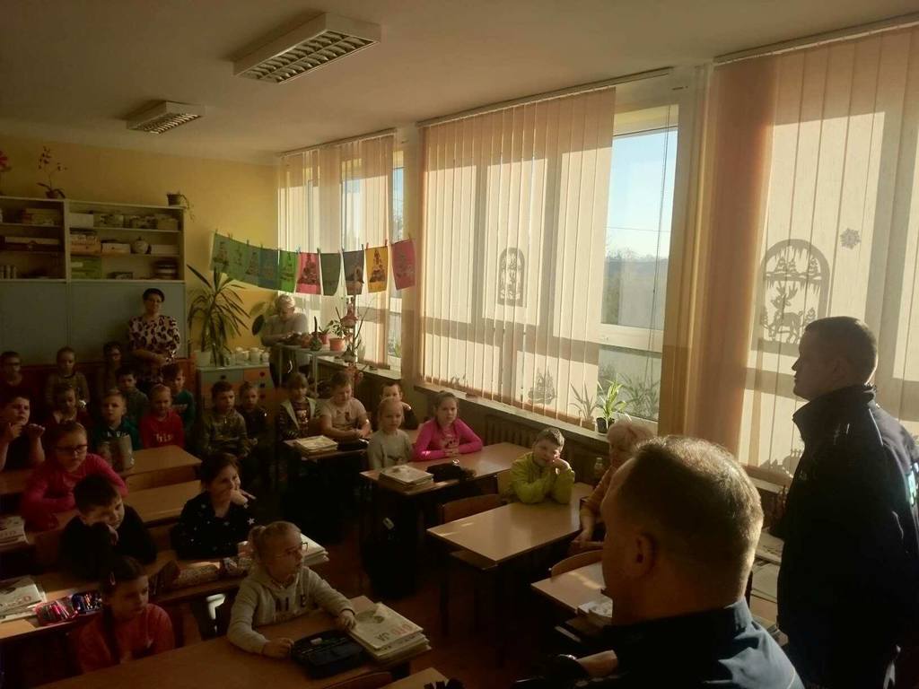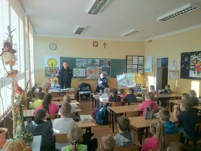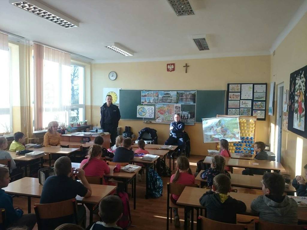 07 lutego 2019 r. Nasi najmłodsi uczniowie wzięli udział w pogadance na temat bezpieczeństwa podczas ferii zimowych. Spotkanie odbyło się dzięki uprzejmości dzielnicowych posterunku policji w Trzeszczanach: asp. szt. Krzysztofa Jańczuka oraz asp. Jacka Wrzeszcza. Policjanci w sposób profesjonalny, ciekawy, dostosowany do wieku uczniów przeprowadzili spotkanie, którym wprowadzili doskonałą atmosferę i zainteresowanie czego efektem była merytoryczna dyskusja oraz szereg tematycznych pytań zadawanych przez uczniów.