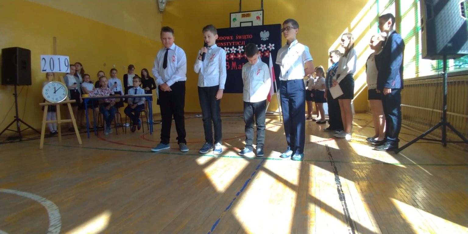 8 maja 2019 roku w naszej szkole odbył się apel poświęcony 228 rocznicy uchwalenia Konstytucji Trzeciego Maja czyli Ustawy Rządowej z 3 maja 1791 roku. Dokument ten regulował ustrój prawny Rzeczpospolitej Obojga Narodów, prawa oraz obowiązki człowieka i obywatela. Ustawa była pierwszą w Europie i drugą na świecie nowoczesną konstytucją.