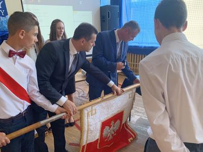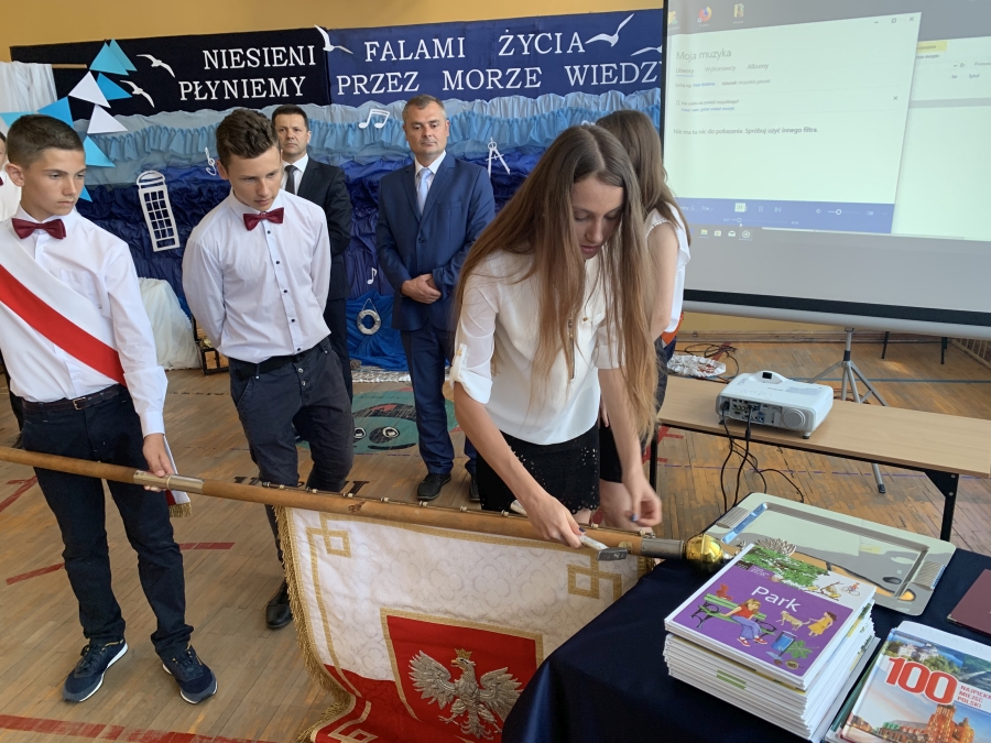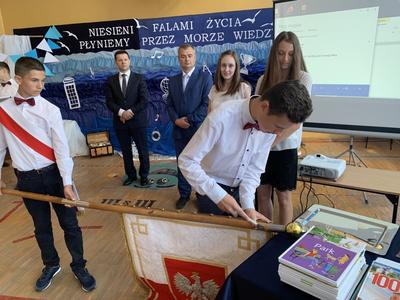 Kolejnym punktem było wbicie symbolicznego gwoździa w drzewiec sztandaru szkoły przez delegację tegorocznych absolwentów szkoły wraz z wychowawcą. Był to bardzo wzruszający moment, który zapisze się na kartach historii naszej szkoły.