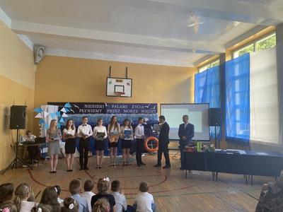 Następnie dyrektor szkoły wraz z wychowawcami wreczył wyróżnienia i nagrody za wyniki w nauce oraz wysoką frekwencję.