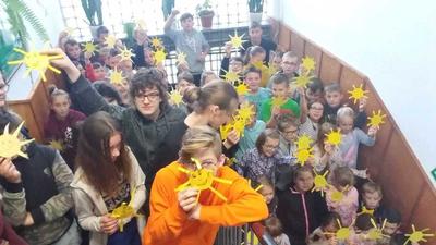 Takimi cytatami, umieszczonymi na wesołych słoneczkach zostali obdarowani rodzice, uczniowie, nauczyciele i pracownicy naszej szkoły 21 listopada b.r. Tego dnia obchodziliśmy Światowy Dzień Życzliwości i Pozdrowień, aby podkreślić jak ważne dla każdego człowieka są: potrzeba szacunku, serdeczności, uśmiechu, mówienie dobrych słów i niesienie bezinteresownej pomocy innym.