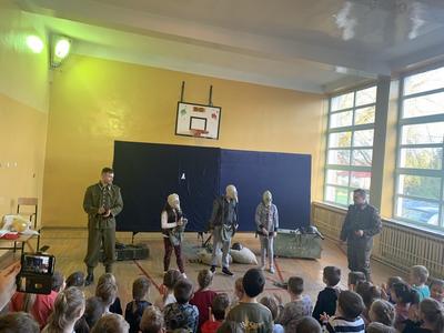 Omawiany temat, wprawdzie dość podniosły, dzięki umiejętnościom artystów z grupy „Rekonstrukto", zabarwiony był dowcipem, dzięki czemu uważnie słuchaliśmy i wzbogaciliśmy naszą wiedzę o nowe, istotne dla naszej postawy patriotycznej informacje.