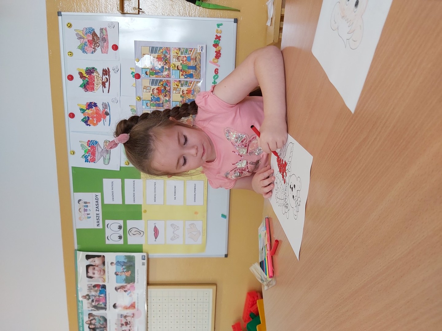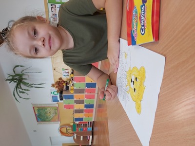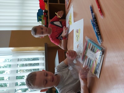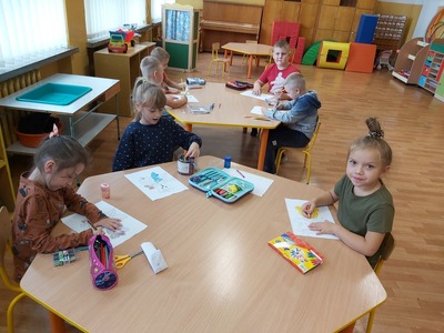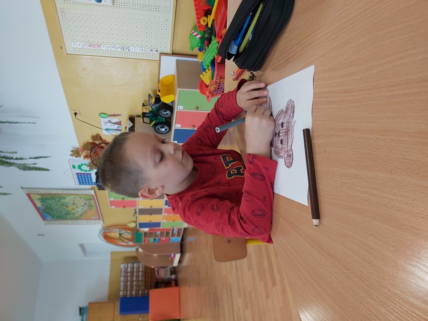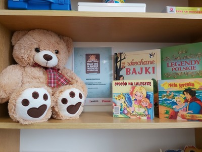 Realizujemy obecnie pierwszy moduł projektu pt. „Książki dzieciństwa” - zalaminowana podobizna misia, podróżuje z dziećmi od domu do domu, gdzie rodzice czytają mu wybrane przez dzieci bajki, a zadaniem zerówiaków jest wykonanie dla misia ilustracji do wybranej wcześniej opowieści.
