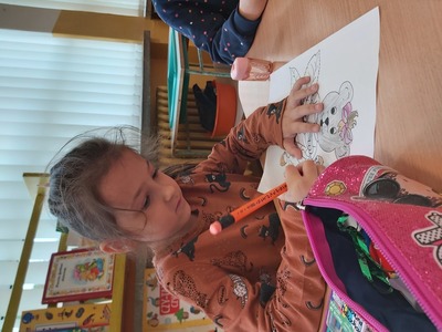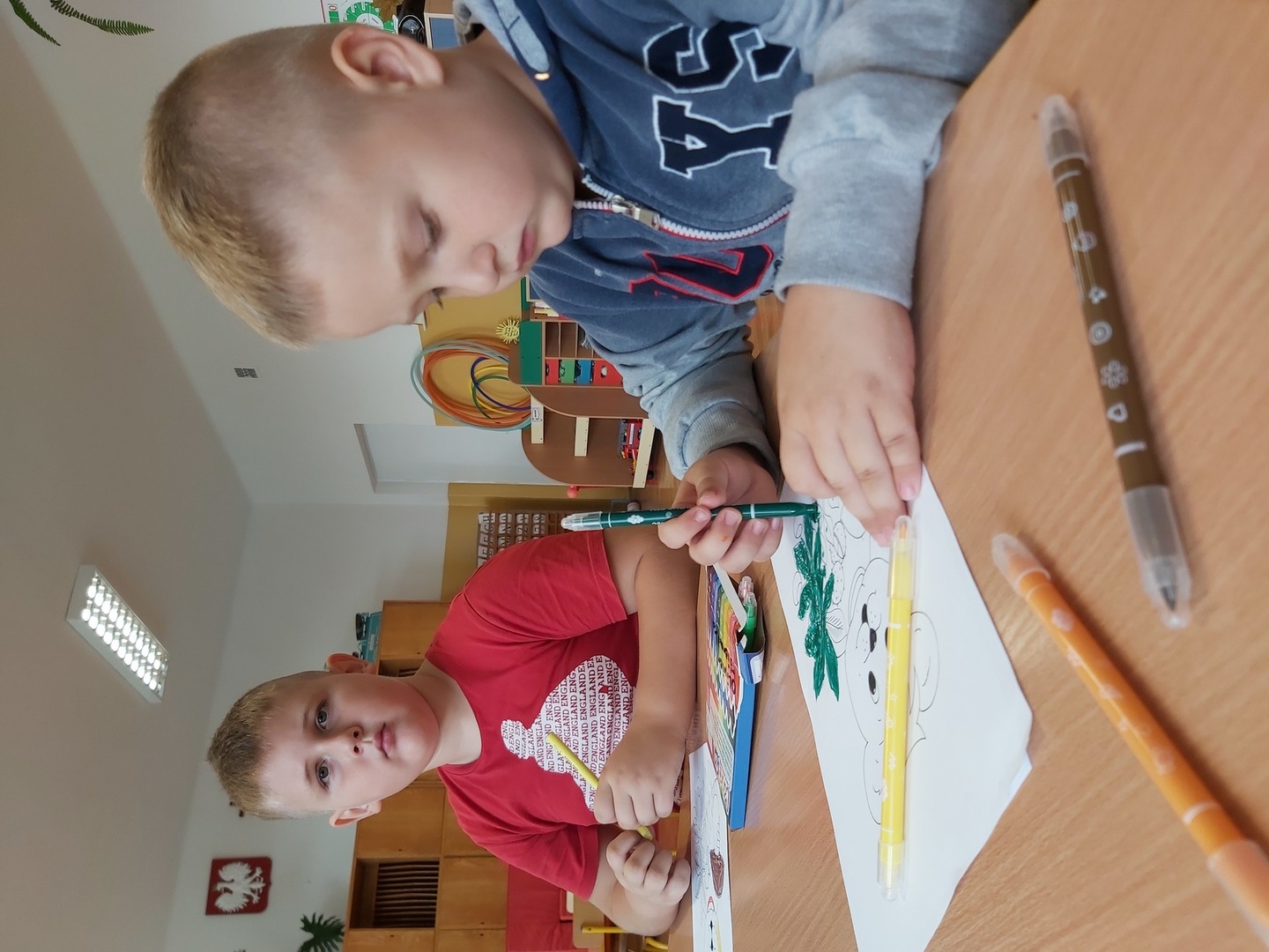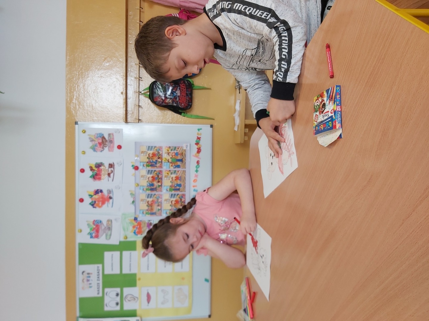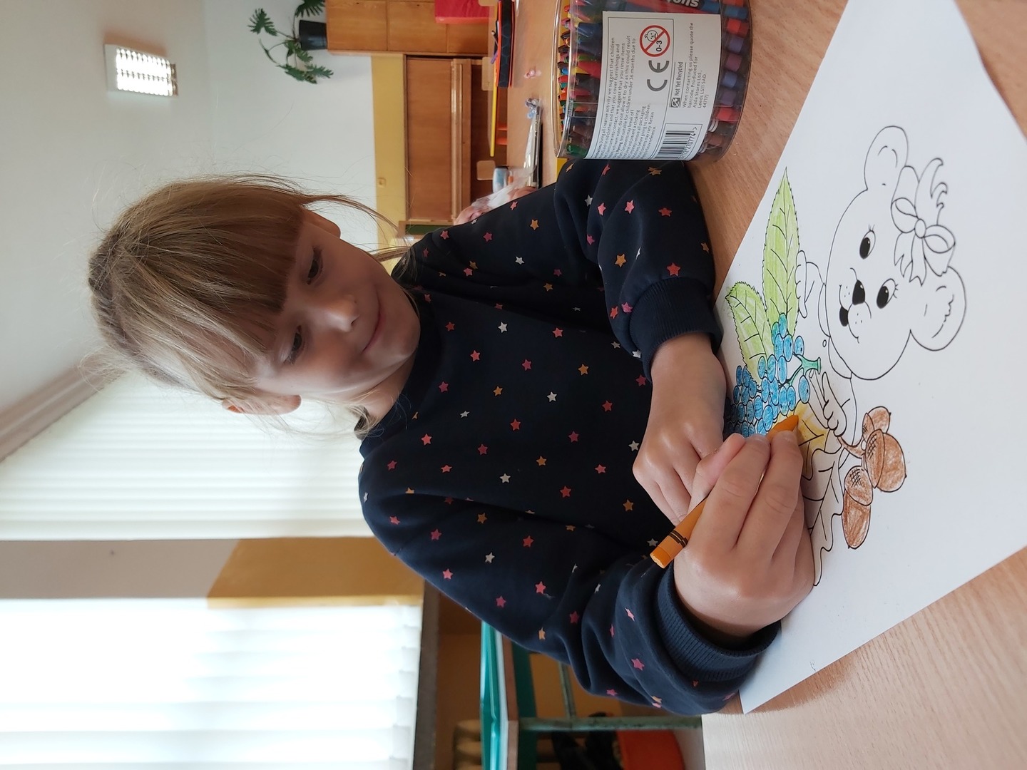 Realizujemy obecnie pierwszy moduł projektu pt. „Książki dzieciństwa” - zalaminowana podobizna misia, podróżuje z dziećmi od domu do domu, gdzie rodzice czytają mu wybrane przez dzieci bajki, a zadaniem zerówiaków jest wykonanie dla misia ilustracji do wybranej wcześniej opowieści.