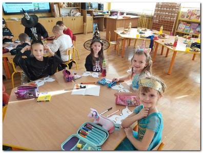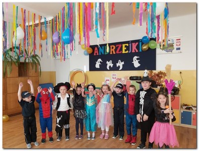 W środę 18 listopada w oddziale przedszkolnym odbyły się Andrzejki. Dzień naszym najmłodszym uczniom upłynął pod znakiem gier, zabaw, tańców oraz wróżb. Wszyscy uczniowie przyszli tego dnia do szkoły przebrani w bardzo oryginalne stroje, które na samym początku pięknie zaprezentowali. Uczniowie przenieśli się w przyszłość dzięki wróżbom oraz wypowiadanemu zaklęciu „hokus –pokus , czary-mary, niech się spełnią andrzejkowe czary”. Innymi atrakcjami były kolorowe tatuaże, tańce z balonami, tworzenie maseczek, malowanie na folii oraz pyszny poczęstunek przygotowany przez rodziców, a także wiele innych zabaw integracyjnych. Był to bardzo wesoły dzień, który długo będziemy wspominać.