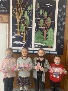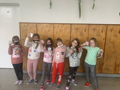 Uczniowie klas "0" - III od rana czekali już na swoje koleżanki z klas, by złożyć im życzenia i wręczyć upominki z okazji ich święta. Wśród prezentów królowały słodycze, ozdoby do włosów oraz kosmetyczki na damskie bibeloty.