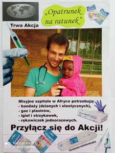 Misyjne szpitale w Afryce potrzebują: nowych igieł, strzykawek, bandaży (dzianych i elastycznych), gaz, plastrów, rękawiczek jednorazowych, venflonów, termometrów bezrtęciowych…. – każdy podarowany opatrunek jest na wagę złota. Dzięki nim misjonarze będą mogli pomóc większej liczbie potrzebujących.