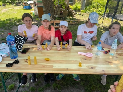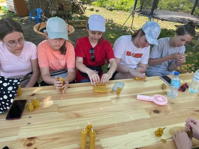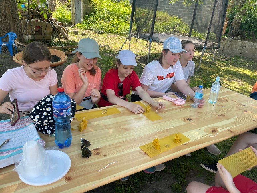 Szóstoklasiści mięli okazję również wykonać swoją własną świecę woskową oraz spróbować domowego ciasta miodowego oraz miodu prosto z plastra...mniam.