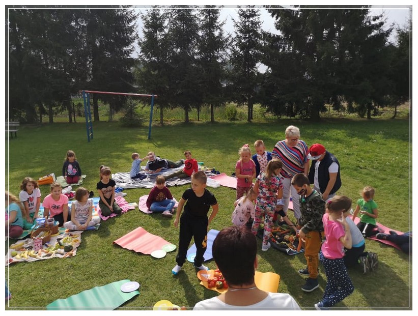 Zgodnie z wytycznymi polityki oświatowej państwa na rok szkolny 2021/2022 zrealizowaliśmy zadanie dotyczące kształtowania właściwych postaw społecznych i dbałości o zdrowie. Dnia 14-09-2021r. klasy I,II,III, wzięły aktywny udział w pikniku pod hasłem ,,JEDZ OWOCE I JARZYNY W NICH MIESZKAJA WITAMINY’’