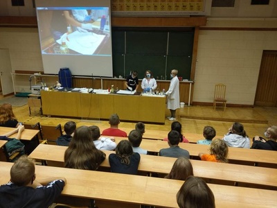 W świecie magii...? NIE! To świat chemii i fizyki. 15 września to dzień kiedy uczniowie klasy 7 i 8 uczestniczyli w pokazach chemicznych, organizowanych przez pracowników UMCS. Pokazy dostarczyły wszystkim niesamowitych wrażeń. Kolorowe, dymiące zlewki, strzelające buty, kłęby dymu i wiele innych atrakcji połączonych z wiedzą czekało na naszych uczniów.