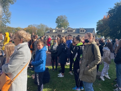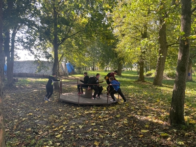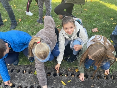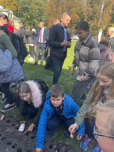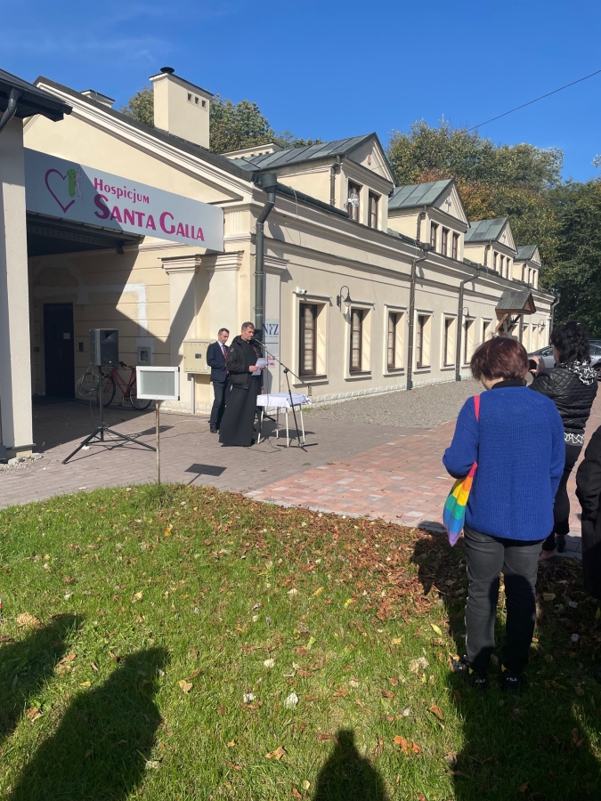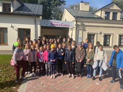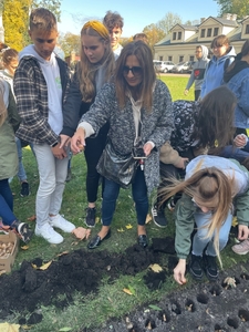 Następnie udaliśmy się do Hospicjum Santa Galla, gdzie mieliśmy okazję zwiedzić okoliczny, bardzo urokliwy park, Mini Zoo i plac zabaw. Ponadto, zapoznaliśmy się z historią pałacu, w którym mieści sie hospicjum. Po wysłuchaniu krótkiej prelekcji, wygłoszonej przez dyrektora placówki - Księdza M. Przybysza oraz Wójta Gminy Łabunie, przyłączyliśmy się do wspólnego sadzenia symbolicznych cebulek żonkili.
