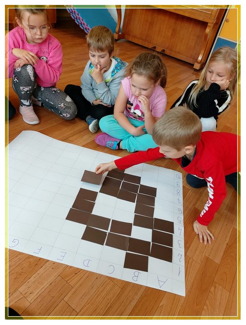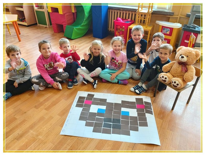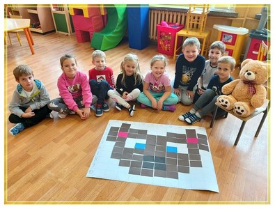 Realizując zadania w ramach Code Week przyłączyliśmy się do wydarzenia wydawnictwa MAC „Kodujemy razem z Małym Misiem”, który jest również jednym z modułów projektu „Mały Miś w świecie wielkiej literatury”. Moduł ten przygotowuje dzieci do czytania poprzez zabawy z kodami. W ramach projektu dzieci uczestniczyły w warsztacie literackim dotyczącym cyberbezpieczeństwa oraz w „Misiowym turnieju łamigłówek logicznych”. Treść misiowych łamigłówek oparta była o autorskie zagadki Misiowej Mamy, ćwiczących umiejętności logicznego myślenia i rozwiązywania problemów, czyli kompetencji niezbędnych w codziennym życiu. Dzieci miały możliwość zaprezentowania własnych zainteresowań i na ich kanwie tworzenia zagadek, łamigłówek i zadań dla przedszkolaków.