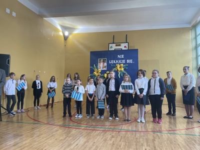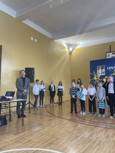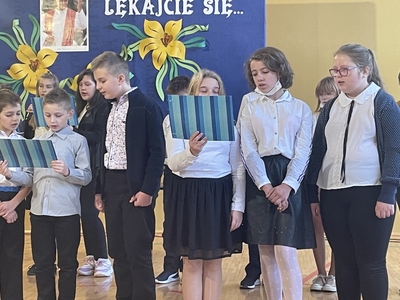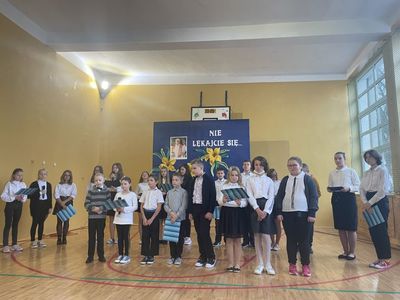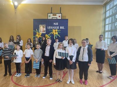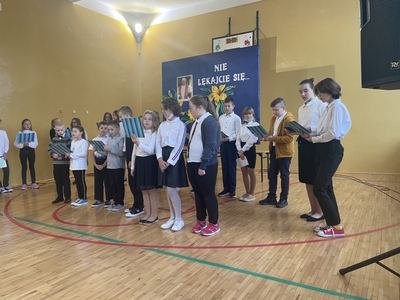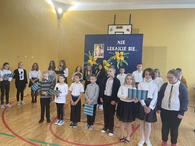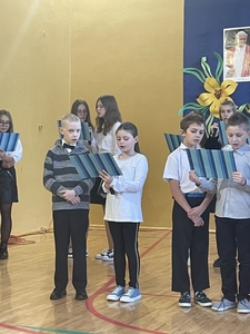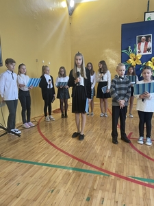 Dziękujemy ucz. kl. III – VIII oraz paniom: E. Lebiedowicz i A. Malec za przygotowanie montażu słowno – muzycznego oraz za kolejny dzień duchowej łączności z Tym, który zostawił nam wielki skarb swojego nauczania...