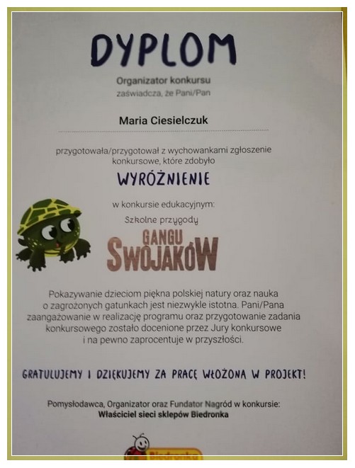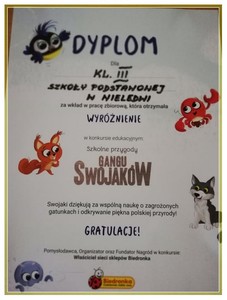 Dnia 17-01-2022 r. uczniowie klasy III naszej szkoły otrzymali wspaniałą wiadomość od organizatorów konkursu edukacyjnego ,, Szkolne Przygody Gangu Swojaków’’ o wyróżnieniu i nagrodzeniu naszej pracy konkursowej spośród 3000 uczestników. (nagrodzono 450)