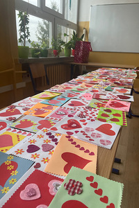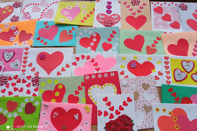 Wszystkie kartki były niezwykle kolorowe i starannie przygotowane. Najwięcej walentynek trafiło do najmłodszych klas, z racji nauczania zdalnego w klasach starszych. Prócz uczniów, kartkami obdarowani zostali także nasi nauczyciele i pracownicy obsługi.