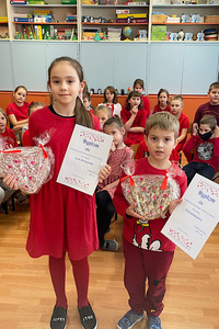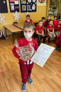 Walentynki były też okazją do wyboru najsympatyczniejszych uczniów naszej szkoły. W wyniku tajnego głosowania zwycięzcami zostali: Lena Skrzypczak z klasy III i Olek Łukasiewicz z oddziału przedszkolnego. Nagrodzeni otrzymali ogromne serca z piernika.