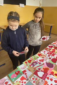 Uczniowie Szkoły Podstawowej w Nieledwi także pamiętali o dnu zakochanych. Z tej okazji, jak co roku, Szkolne Koło Wolontariatu zorganizowało pocztę walentynkową. We wtorek i środę wolontariusze sprzedawali ręcznie wykonane walentynki. Dochód z kiermaszu został przeznaczony na wsparcie Hospicjum Santa Galla w Łabuńkach. Już od 7 lutego, przygotowana i pięknie ozdobiona skrzynka czekała przy pokoju nauczycielskim na kartki. Każdy z uczniów naszej szkoły przez cały tydzień mógł wrzucić do skrzynki swoją walentynkę. Poczta cieszyła się ogromnym zainteresowaniem.