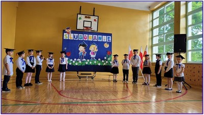 3 czerwca w naszej szkole miała miejsce jedna z najważniejszych uroczystości w roku szkolnym, do społeczności uczniowskiej zostali przyjęci uczniowie klasy pierwszej. Uczniowie pod kierunkiem wychowawczyni Pani Elżbiety Szkalej przygotowali bardzo ciekawą część artystyczną podczas, której zaprezentowali swoją wiedzę patriotyczną, a swoją postawą udowodnili, że są gotowi do podjęcia obowiązków uczniowskich. Następnie w bardzo podniosłej atmosferze złożyli ślubowanie przed pocztem sztandarowym.