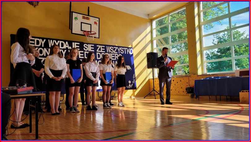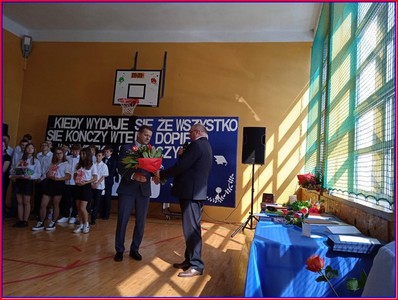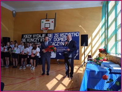 Drodzy Absolwenci i Uczniowie! Mam nadzieję, że każdy z Was odbierze dziś świadectwo czy dyplom potwierdzający sukces w nauce, licznych konkursach i olimpiadach wiedzy i umiejętności, także artystycznych i sportowych. Wierzę, że pochwały i gratulacje zachęcą Was do nauki i starań, by być coraz lepszym. Wakacje zaczynają się teraz dla wszystkich, jednak ósmoklasiści dopiero w lipcu otrzymają zaświadczenia o wynikach egzaminu kończącego edukację podstawową i czekają na informację, do której szkoły będą uczęszczać od września. Życzę Wam, aby dokonany wybór okazał się trafny, zgodny z Waszymi zainteresowaniami i możliwościami.