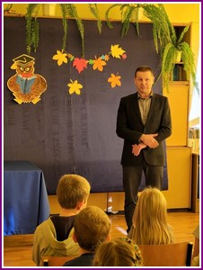 Na początku głos zabrał pan dyrektor Andrzej Pachla, który zwrócił się do recytatorów ze słowami otuchy, życząc wszystkim wspaniałego występu.
