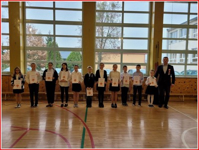Podczas uroczystego spotkania Pan Dyrektor Andrzej Pachla wręczył również dyplomy za udział w szkolnych eliminacjach XXVI Jesiennego Konkursu Recytatorskiego oraz nominacje do etapu na szczeblu gminnym. Serdecznie gratulujemy wszystkim uczestnikom i trzymamy kciuki za nominowanych!