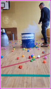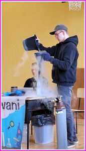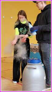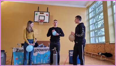 Celem pokazu było przybliżenie tajników fizyki i chemii w sposób atrakcyjny i zrozumiały zarówno dla tych najmłodszych jak i najstarszych uczniów szkoły. W programie znalazły się zabawy z gazami (ciekły azot, hel), ale również ciekawe zjawiska z fizyki (ciśnienie w próżni). Eksperymenty przysporzyły uczniom wiele radości, zwłaszcza ten w którym sprawdzane były właściwości helu przy użyciu balonika oraz te, które wywołały donośne efekty dźwiękowe. Różne rekwizyty i substancje sprawiły, że czuliśmy się jak w prawdziwym laboratorium.