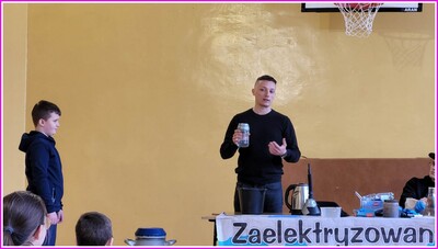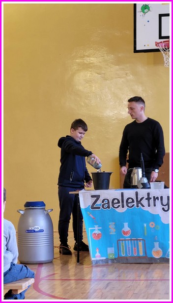 W środę 5 kwietnia gościliśmy w naszej szkole grupę „ZAELEKTRYZOWANI” z Lublina. Nasi uczniowie mieli okazję zgłębić wiedzę z chemii, fizyki oraz biologii w bardzo ciekawy i lubiany przez nich sposób – metodą eksperymentów. Uczniowie oglądali oraz uczestniczyli w pokazach z zaciekawieniem oraz dużym zaangażowaniem.