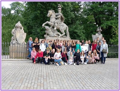 W dniach 15-16. 06. 2023r. uczniowie klas III-VIII Szkoły Podstawowej w Nieledwi wraz z opiekunkami p. Martą Kamińską, p. Jolantą Mazurek, p. Dorotą Maciąg oraz p. Dorotą Błaszczuk udaliśmy się na wycieczkę szkolną do Warszawy. Celem podróży było zwiedzanie obiektów znajdujących się na Krakowskim Przedmieściu oraz Centrum Nauki Kopernik. Całej wycieczce towarzyszyła wielka ciekawość, tych szczególnych miejsc, o których już w trakcie podróży informował przewodnik. Po dojechaniu na miejsce wraz z przewodnikiem zwiedzaliśmy Łazienki Królewskie. Następnie udaliśmy się do Centrum Nauki Kopernik, gdzie znajduje się ponad 450 eksponatów. Uczniowie mieli możliwość podziwiać i testować zaawansowane technologie i multimedia, ale też proste rozwiązania często oparte na wynalazkach sprzed wielu lat. Odbył się także seans w planetarium. Następnego dnia wjechaliśmy na 30. piętro Pałacu Kultury i Nauki, aby podziwiać panoramę miasta. Kolejnym punktem programu wycieczki był Grób Nieznanego Żołnierza i uroczysta zmiana warty. W dalszej kolejności udaliśmy się na spacer po Starym Mieście, gdzie podziwialiśmy między innymi Kolumnę Zygmunta, Zamek Królewski, posąg syrenki, a następnie przeszliśmy pod Pałac Prezydencki. Ostatnim punktem zwiedzania był pomnik Małego Powstańca, który upamiętnia najmłodszych uczestników powstania warszawskiego. Po tych atrakcjach wszyscy zmęczeni, ale bardzo zadowoleni wrócili do autokaru, aby rozpocząć podróż powrotną do domu. Dzieci swoimi przeżyciami i wiadomościami dzieliły się z innymi, sami zaś wzbogacili swoją wiedzę o nowe doświadczenia.
