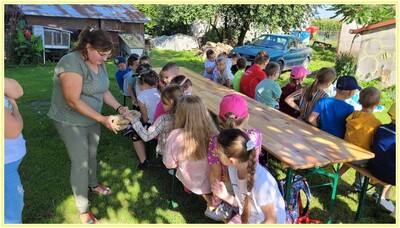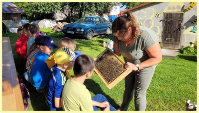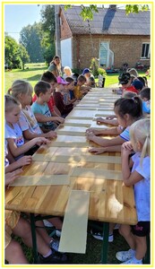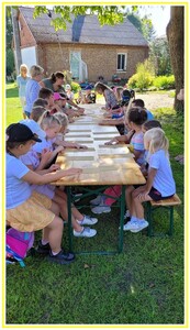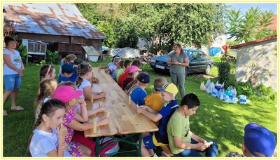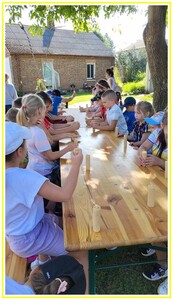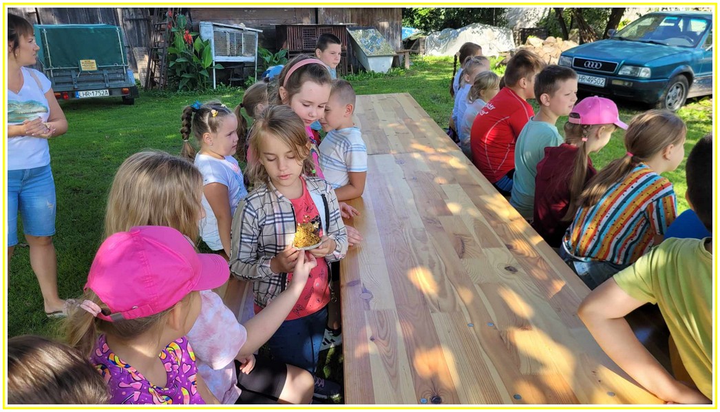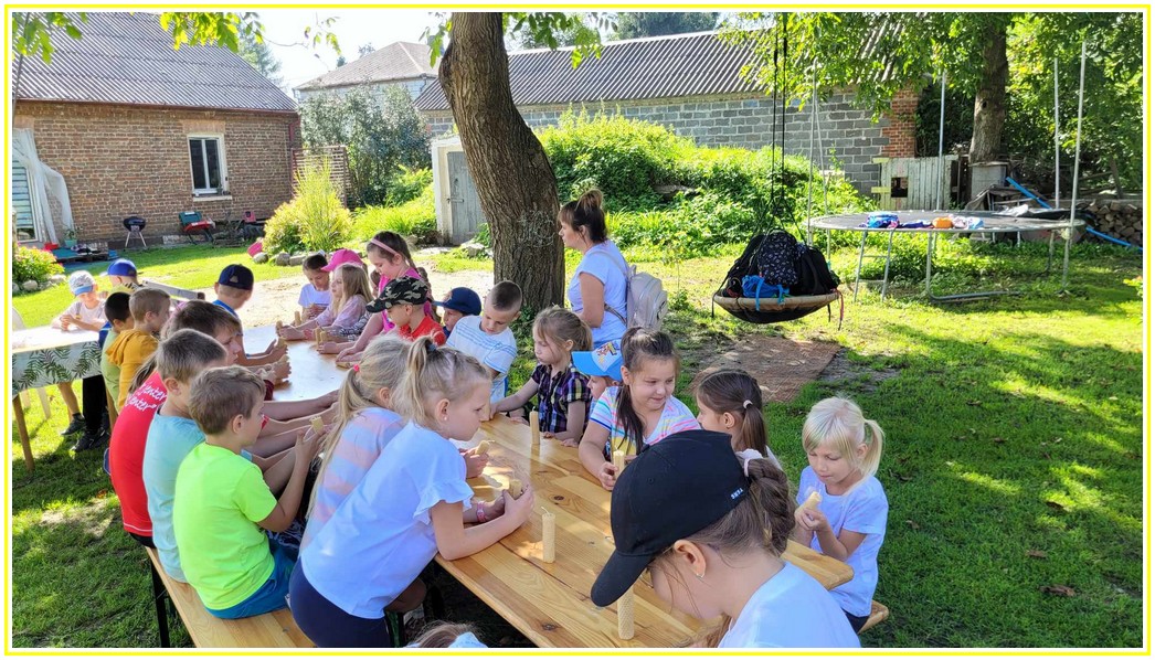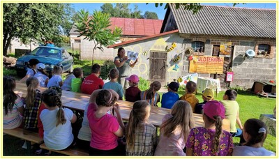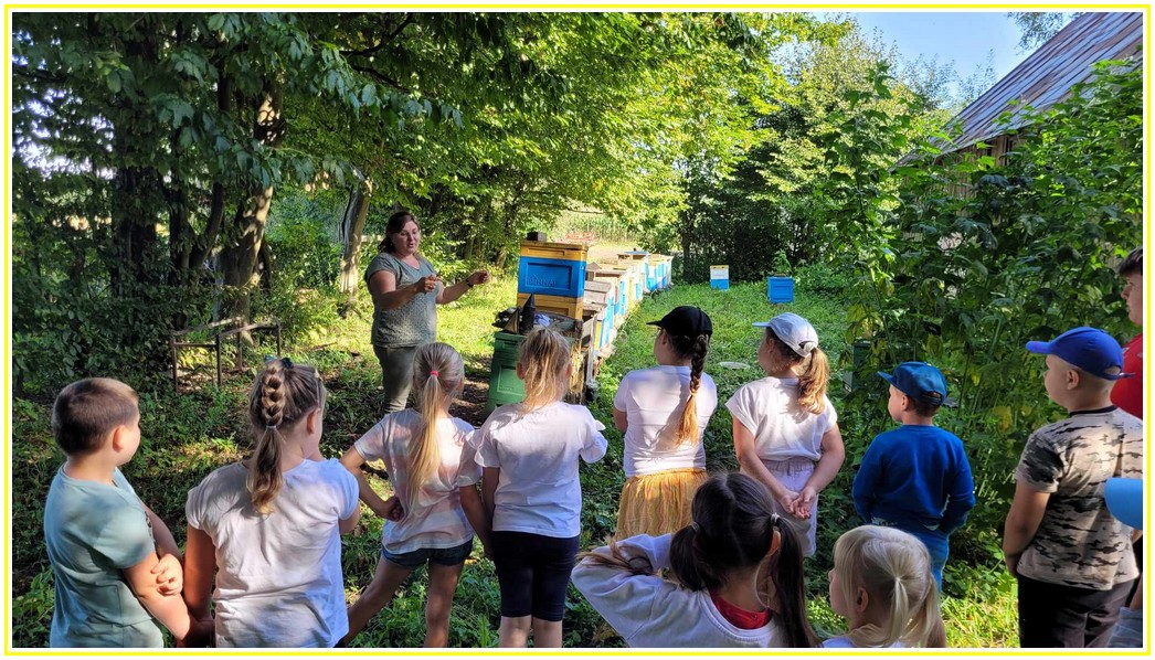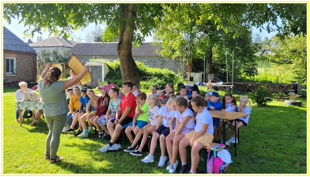 W piątek 8 września uczniowie klas 0-III pod opieką wychowawczyń udali się do pasieki w Mołodiatyczach. Nasi najmłodsi uczniowie uczestniczyli w warsztatach przeprowadzonych przez Panią Klaudię Bieńko, która jest pszczelarzem. Podczas zajęć prowadząca pokazała dzieciom swoją pasiekę, wyjawiła wiele ciekawostek dotyczących życia pszczół oraz zasad panujących w ulach. Następnie grupa przeniosła się na podwórko, gdzie Pani Klaudia opowiedziała dzieciom o tym w jaki sposób wytwarza miód, pokazała kit pszczeli i plastry miodu. Wszyscy mieli możliwość skosztowania pysznego, świeżo odwirowanego smakołyku. Na zakończenie wszyscy uczniowie wykonali świeczkę z wosku pszczelego, którą każdy zabrał ze sobą jako pamiątkę. Były to bardzo ciekawe warsztaty, dzieci bardzo miło spędziły czas, zadawały wiele pytań oraz z zaciekawieniem słuchały opowieści o pszczołach. Zajęcia odbyły się w ramach projektu „Jeszcze gramy w zielone…” finansowanego przez Wojewódzki Fundusz Ochrony Środowiska w Lublinie.
