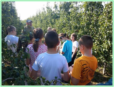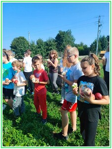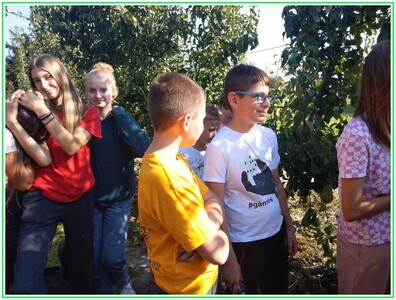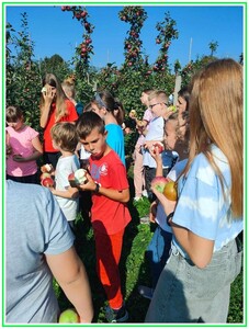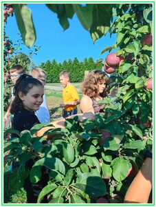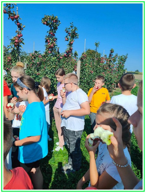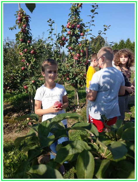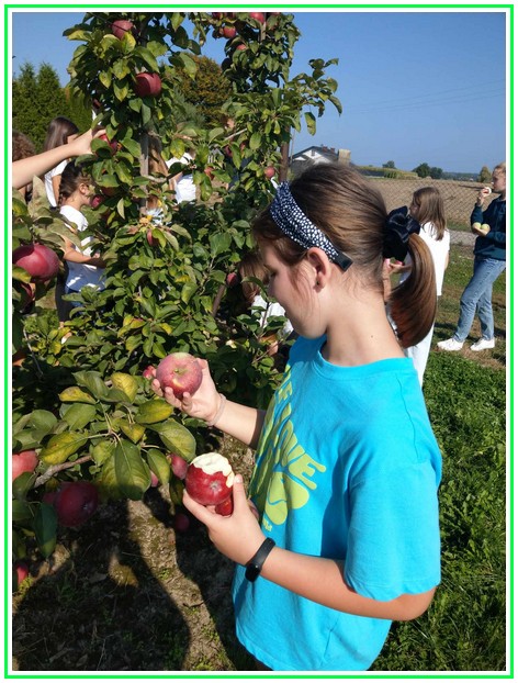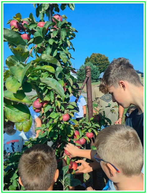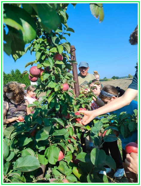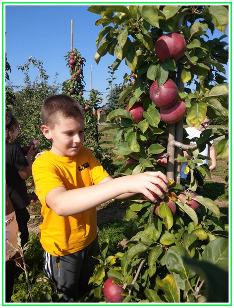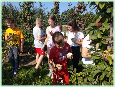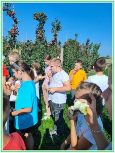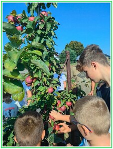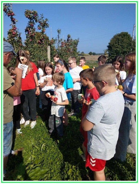 W ramach realizowanego projektu „Jeszcze gramy w zielone” w dniu 18.09.2023 r., klasy IV i VIII pojechały na spotkanie z sadownikiem Panem Zdzisławem Szczękiem do Hrubieszowie. Gospodarz oprowadził nas po pięknym terenie sadu. Opowiedział nam z ogromną pasją o pielęgnacji drzew, minerałach, które są potrzebne do wzrostu drzew. Pokazał jak wygląda podcinanie i odmładzanie jabłoni i grusz. Mieliśmy przyjemność wysłuchać wielu ciekawostek na temat prowadzenia sadu oraz przyjrzeć się jak wygląda zbiór owoców.