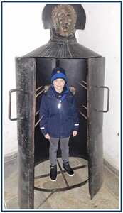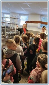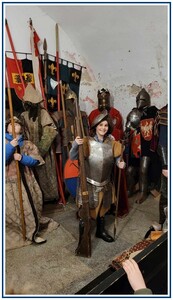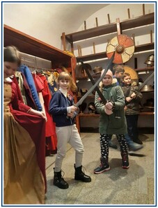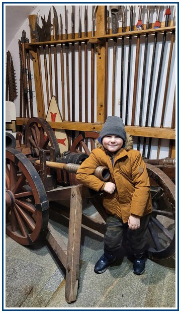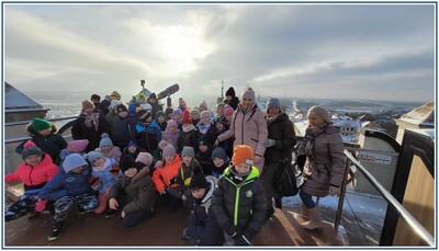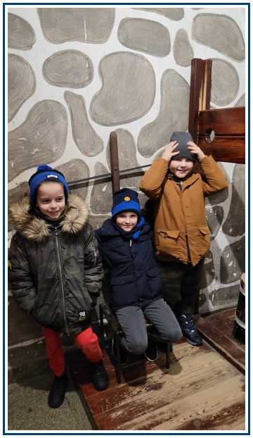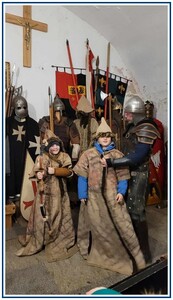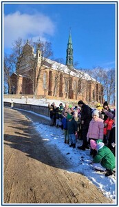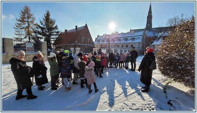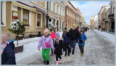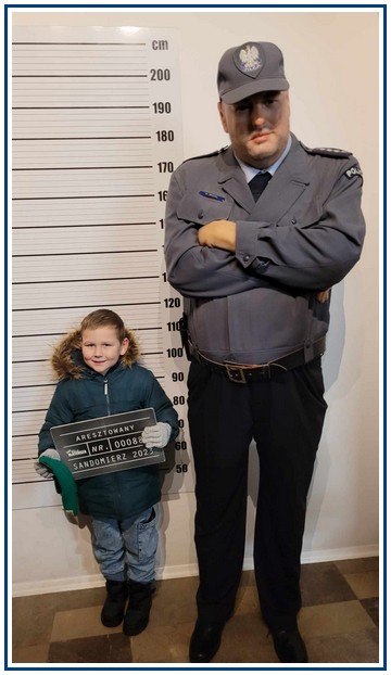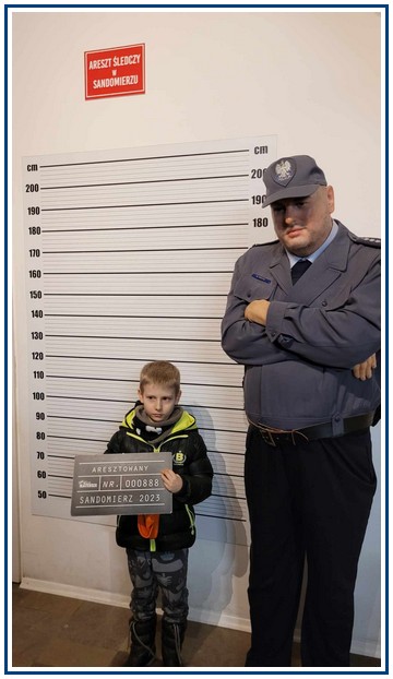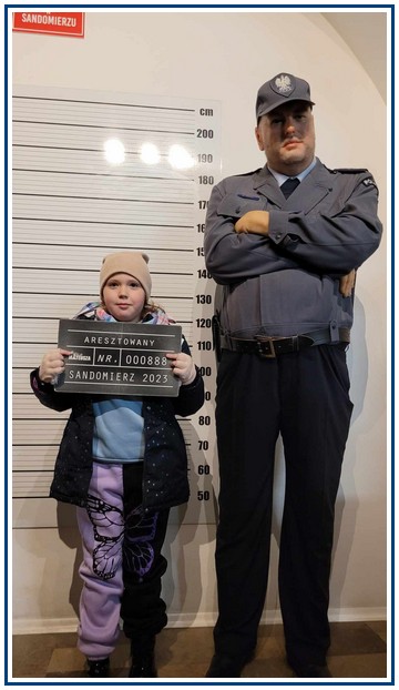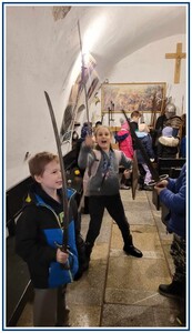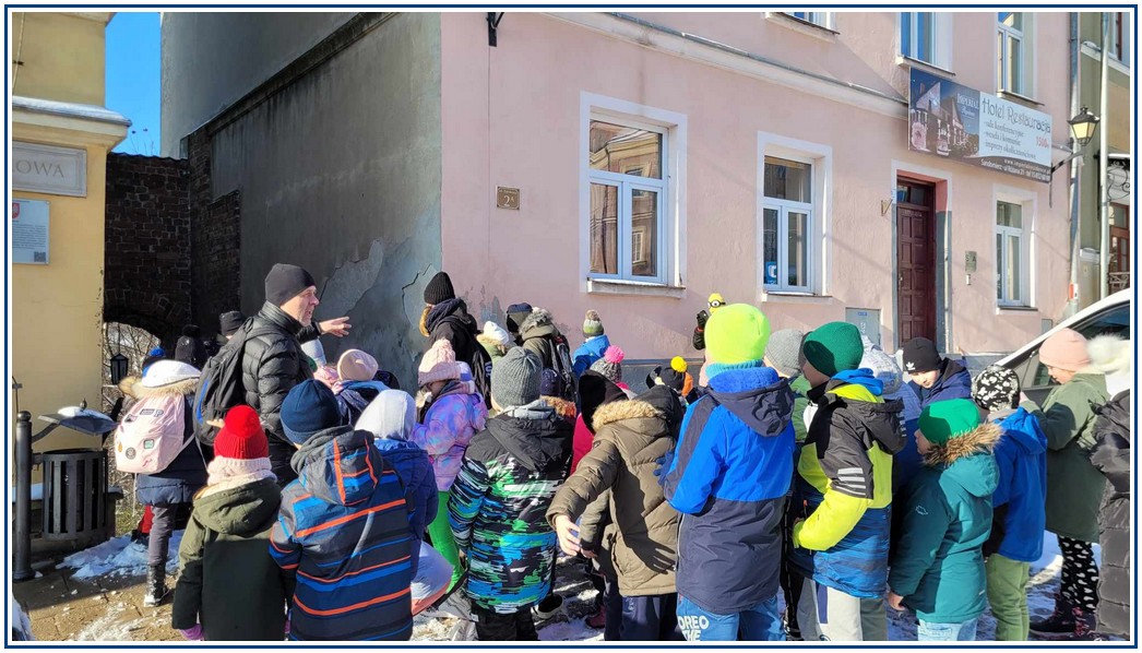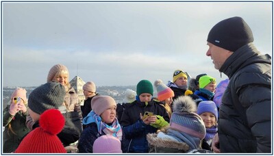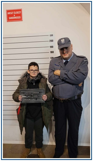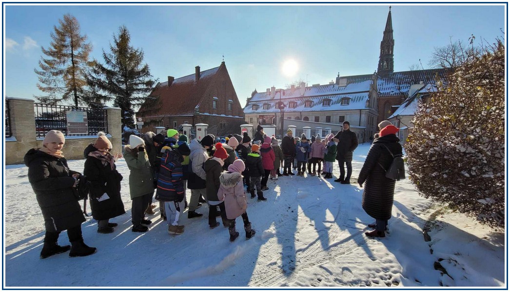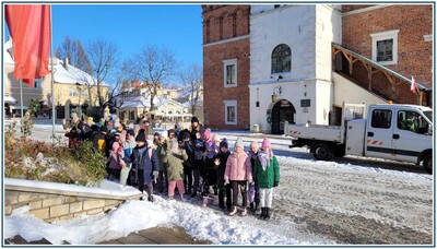 Wycieczka wyruszyła z Nieledwi o wczesnych godzinach porannych i trwała calutki dzień. Program był bardzo bogaty, nie było możliwości ani czasu na nudę. Na rozgrzewkę po przyjeździe do Sandomierza grupa musiała pokonać 6 pięter, aby ujrzeć piękną panoramę miasta, następnie z góry udaliśmy się w podziemia, gdzie odbyliśmy bardzo ciekawą lekcję historii. Później przemieściliśmy się do świata postaci popularnego serialu pt. „Ojciec Mateusz”. Uczniowie obejrzeli piękne figury woskowe w scenerii wprost z ekranu telewizora. Kolejnym punktem naszej wyprawy był spacer po rynku, gdzie dopisała nam piękna słoneczna pogoda, która w połączeniu z bielutkim śniegiem sprawiła, że spacer dodał wszystkim energii i chęci do dalszych przygód. Po miłej przechadzce wybraliśmy się do zbrojowni, gdzie przywitał nas bardzo zabawny rycerz, który opowiedział mnóstwo ciekawostek na temat czasów kiedy żyli rycerze. Uczniowie zobaczyli, a co najważniejsze i najciekawsze przymierzyli zbroje rycerskie, wzięli do rąk miecz, kuszę, halabardę. Dziewczynki mogły na chwilę poczuć się jak renesansowe czy barokowe księżniczki.