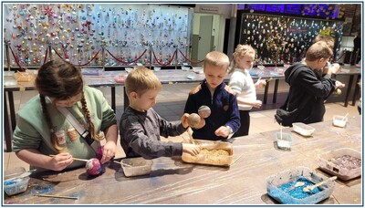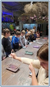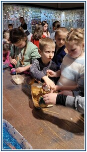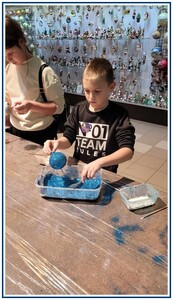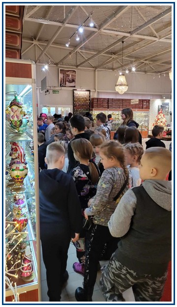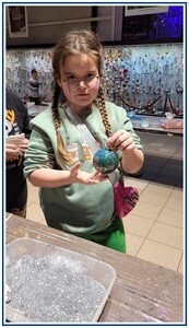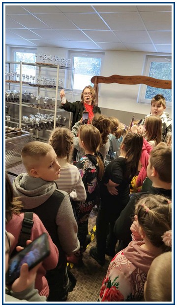 Ostatnim punktem naszej wyprawy była wizyta w Muzeum Bombki Choinkowej w Nowej Dębie, gdzie najpierw pod opieką przewodnika obejrzeliśmy przepiękne eksponaty, którymi są cudowne bombki choinkowe, następnie udaliśmy się do miejsca gdzie bombki są wykonywane i mieliśmy okazję przyjrzeć się całemu procesowi powstawania bombki. Później przeszliśmy do sali zwanej dekoratornią, w której Panie Dekoratorki ręcznie malowały bombki wykonane w fabryce. Ostatnim punktem wycieczki były warsztaty, podczas których każdy wykonał samodzielnie swoją autorską bombkę.
