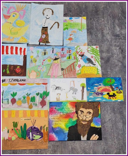· Ogólnopolski konkurs ilustratorski pt. „Bajać na ludowo” ogłoszony przez Narodowy Instytut Kultury i Dziedzictwa Wsi. Przepiękne ilustracje do bajek ludowych wykonali uczniowie klasy II pod kierunkiem wychowawcy p. Małgorzaty Fedorczuk. Na rozstrzygnięcie powyższego konkursu również z niecierpliwością oczekujemy.