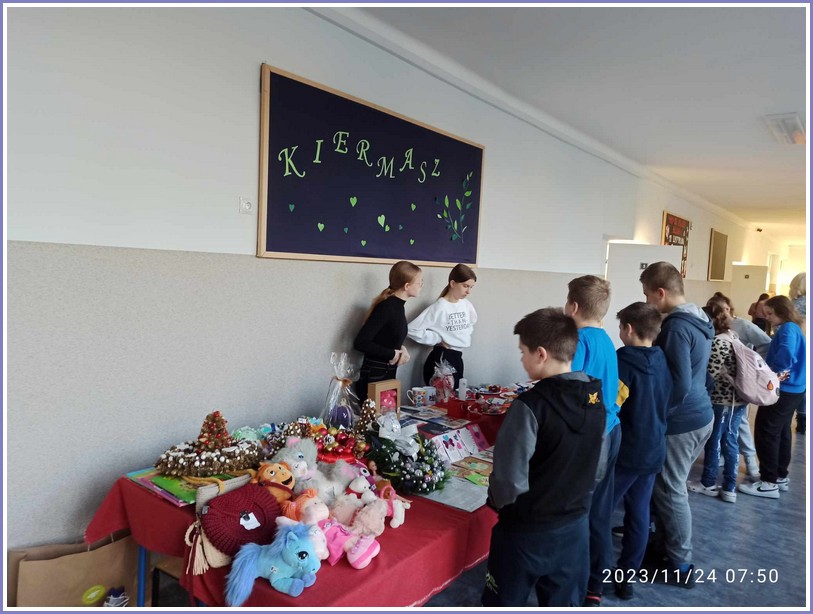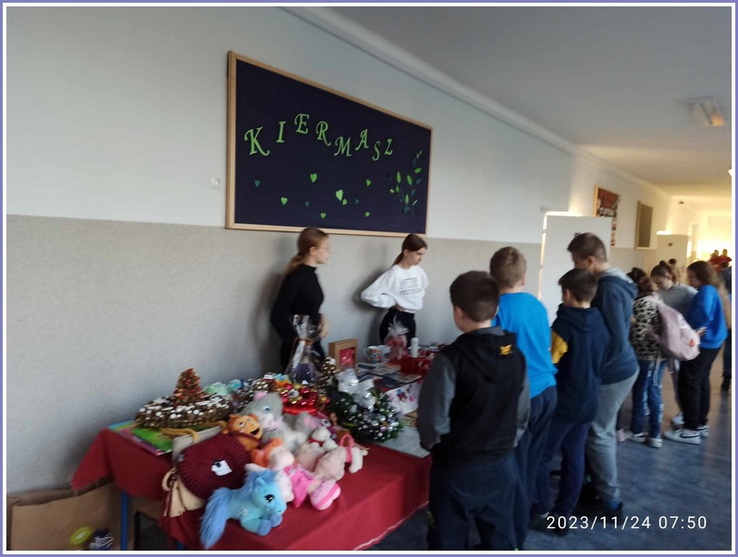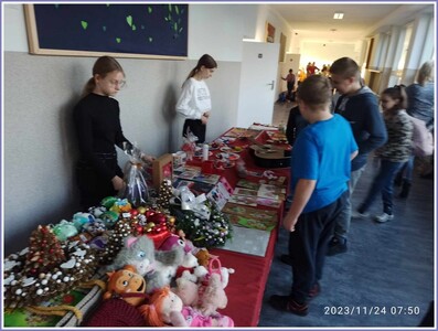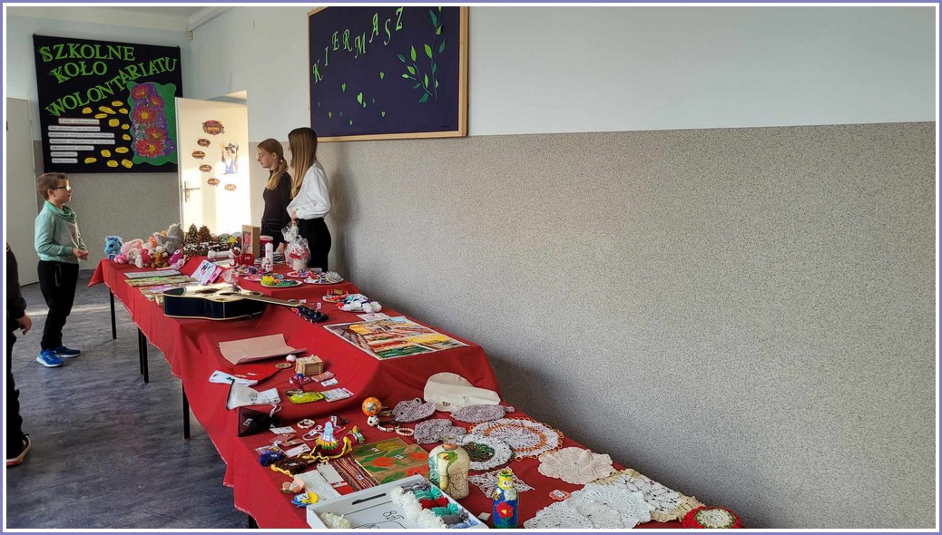 Przeprowadzony w listopadzie kiermasz charytatywny cieszył się ogromnym zainteresowaniem. Środki pieniężne uzyskane ze sprzedaży różnego rodzaju rękodzieła oraz innych przedmiotów zostały przekazane na pomoc osobie chorej na chorobę nowotworowej.